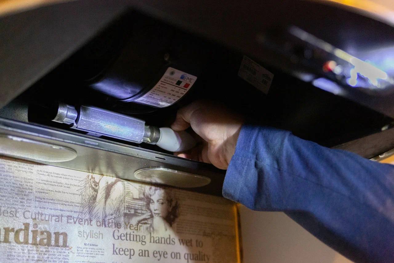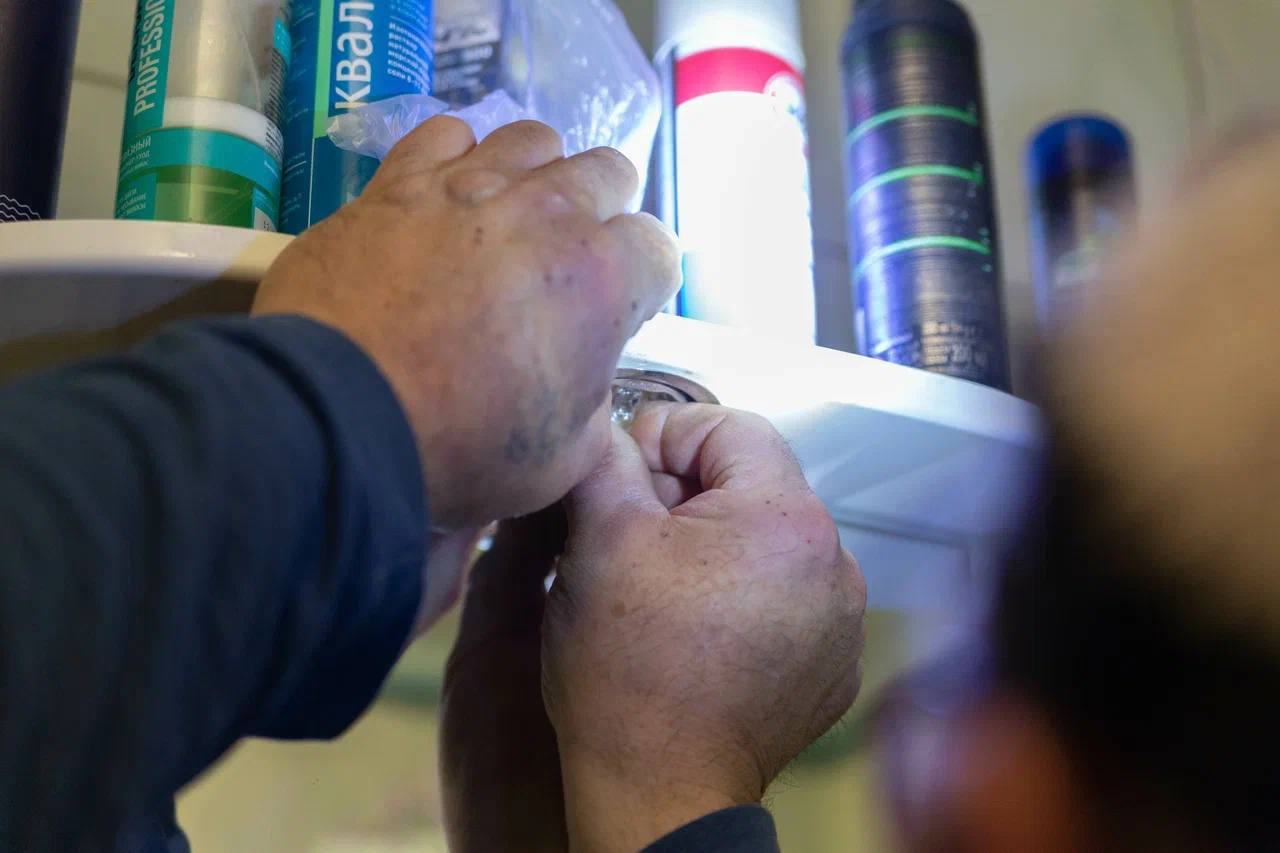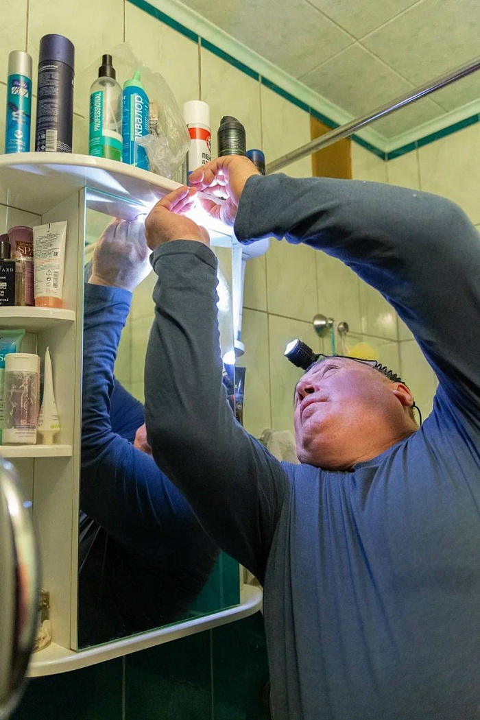 Мужчина заменил лампочку в ванной, в зеркальном шкафчике, а также в вытяжке на кухне.